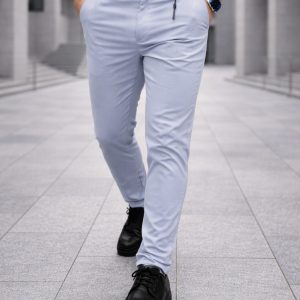 A refined light blue tone crafted in soft stretch fabric for a clean, polished silhouette. Designed for comfort with an elegant modern edge.