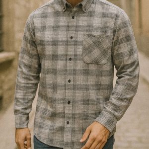 Këmishë flanel në gri të hapur me dizajn minimalist kuadratesh. Shumë e butë dhe e lehtë për t’u kombinuar, ideale për stil casual ose smart-casual.
