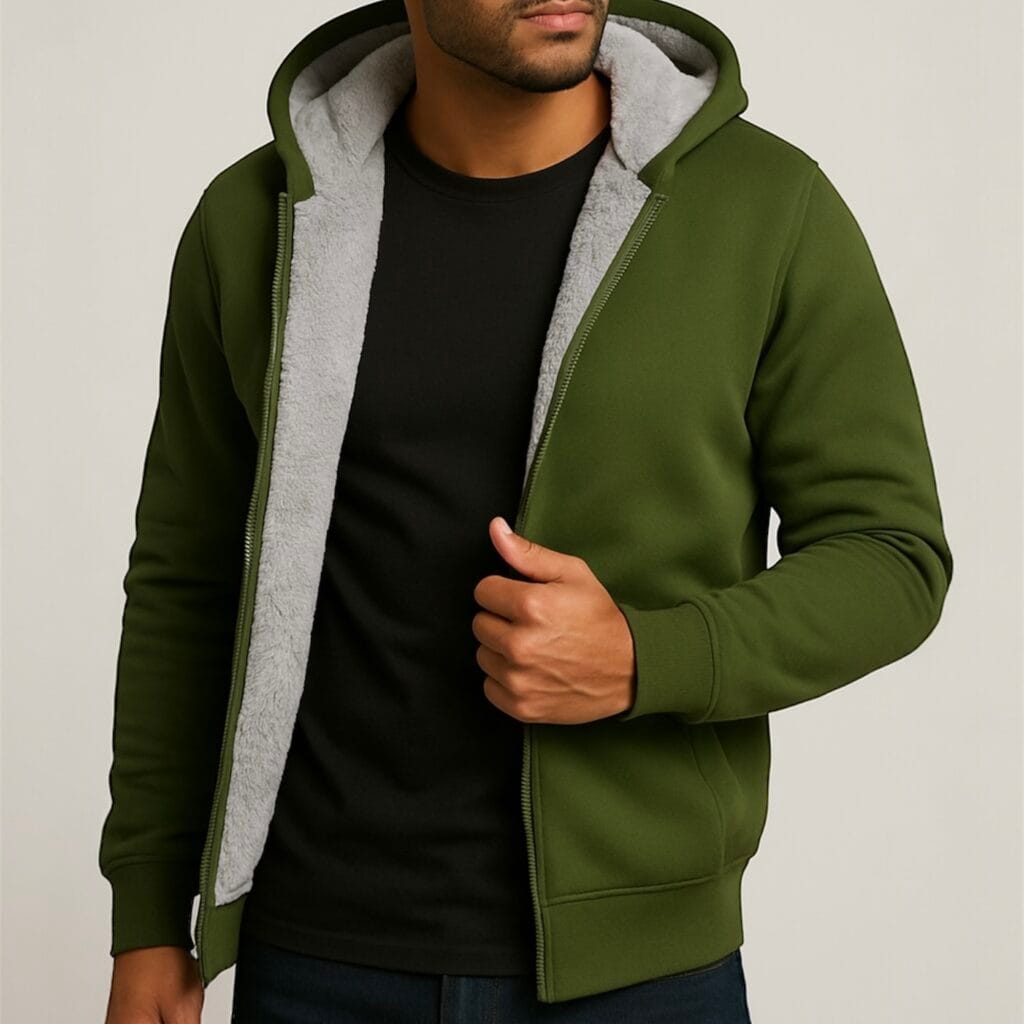 • Knitted rib collar and cuffs