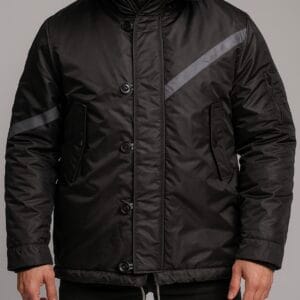 A premium long parka jacket designed for ultimate warmth and urban sophistication. Crafted from durable weather-resistant fabric, it features a detachable faux fur hood, reflective stripe accents, and adjustable drawstrings for a tailored silhouette. Perfect for cold winter days with style and comfort.