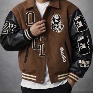 Xhaketë varsity me identitet luksoz dhe stil street modern, e dizajnuar për një pamje unike dhe të rafinuar. Trupi në ngjyrë kafe me përzierje leshi dhe mëngët kontrastuese krijojnë një siluetë të fortë dhe të balancuar, ndërsa detajet grafike dhe qëndisjet premium e kthejnë këtë model në një statement të vërtetë mode.