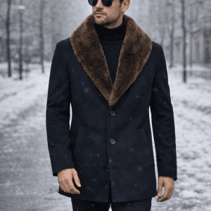 A refined luxury coat designed for men who value elegance, confidence, and winter sophistication. Crafted in a deep dark blue tone and finished with a premium fur-effect collar, this coat delivers a powerful yet timeless look inspired by classic European style.