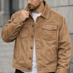 Xhaketë premium me dizajn të pastër dhe elegant, e realizuar nga material cilësor me pamje velour (suede-look). Ngjyra camel i jep produktit një karakter të ngrohtë, modern dhe shumë të lehtë për kombinim me veshje të përditshme ose smart-casual. Prerja e balancuar dhe struktura e rregullt e bëjnë ideale për një stil urban të rafinuar, si për ditën ashtu edhe për mbrëmje.