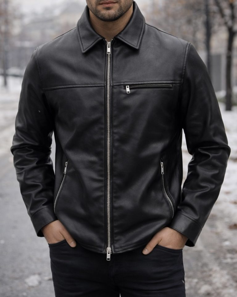 A refined leather jacket crafted for sophisticated urban style. Featuring a clean silhouette with premium leather texture and elegant detailing, this piece delivers timeless luxury, confidence, and effortless class—ideal for modern city wear.
