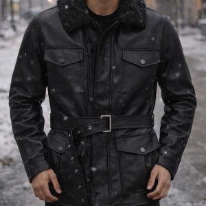 A statement of refined masculinity, this luxury black leather jacket combines timeless design with winter-ready elegance. Featuring a plush shearling-style collar, a structured belted waist, and functional pockets, it delivers warmth, authority, and premium urban style in one iconic piece.