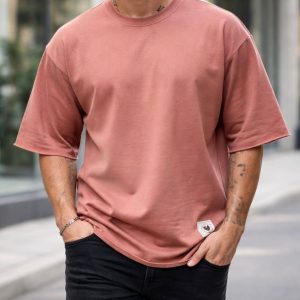Oversized Dusty Coral T-shirt with raw edge details, offering a warm and modern streetwear look.