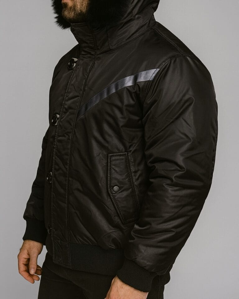 A winter-ready padded jacket featuring a detachable faux fur hood and reflective stripe details for a sleek, modern edge. Designed to provide warmth and comfort while maintaining a structured silhouette and urban appeal.