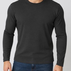 A premium ribbed long sleeve in deep black, designed for a clean and structured everyday look. Soft, stretch-friendly fabric provides comfort and a sharp silhouette that transitions easily from casual to smart.