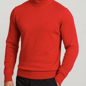 A striking red turtleneck crafted for confident style. With a smooth premium knit and tailored fit, this piece brings warmth and bold elegance to your winter wardrobe.