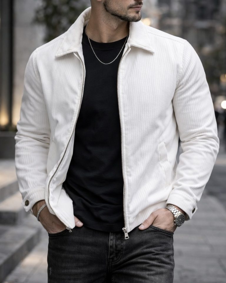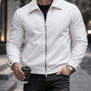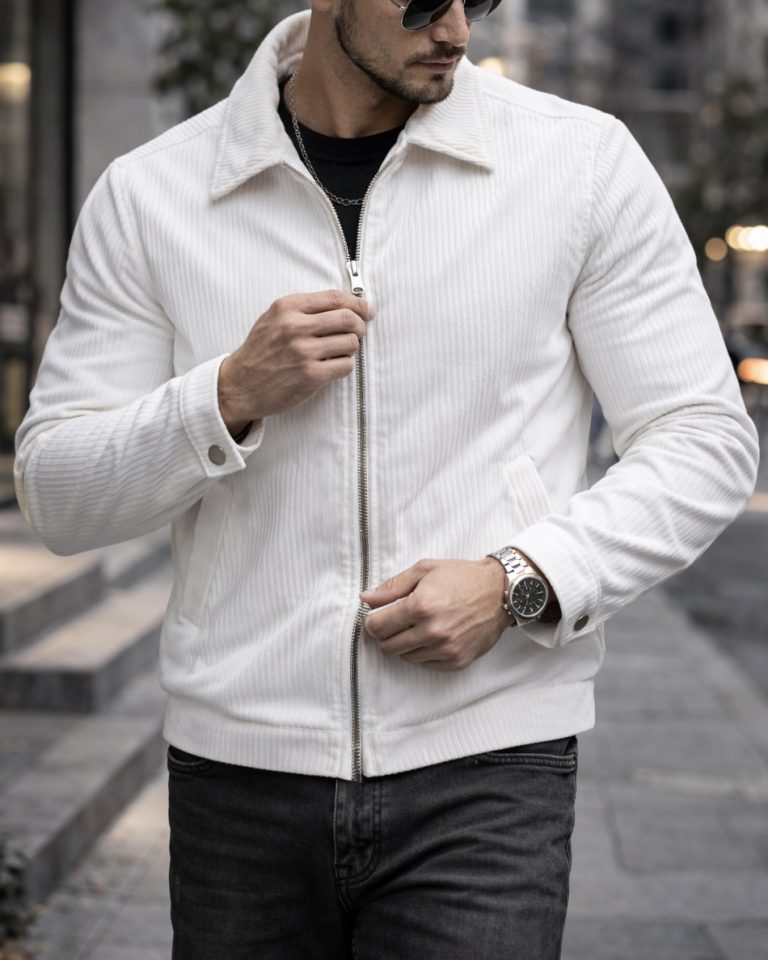 Xhaketë moderne me teksturë premium dhe dizajn minimalist clean. Struktura e rregullt dhe detajet vertikale të materialit krijojnë një pamje urbane të rafinuar, ideale për kombinime smart casual dhe styling modern elegant.