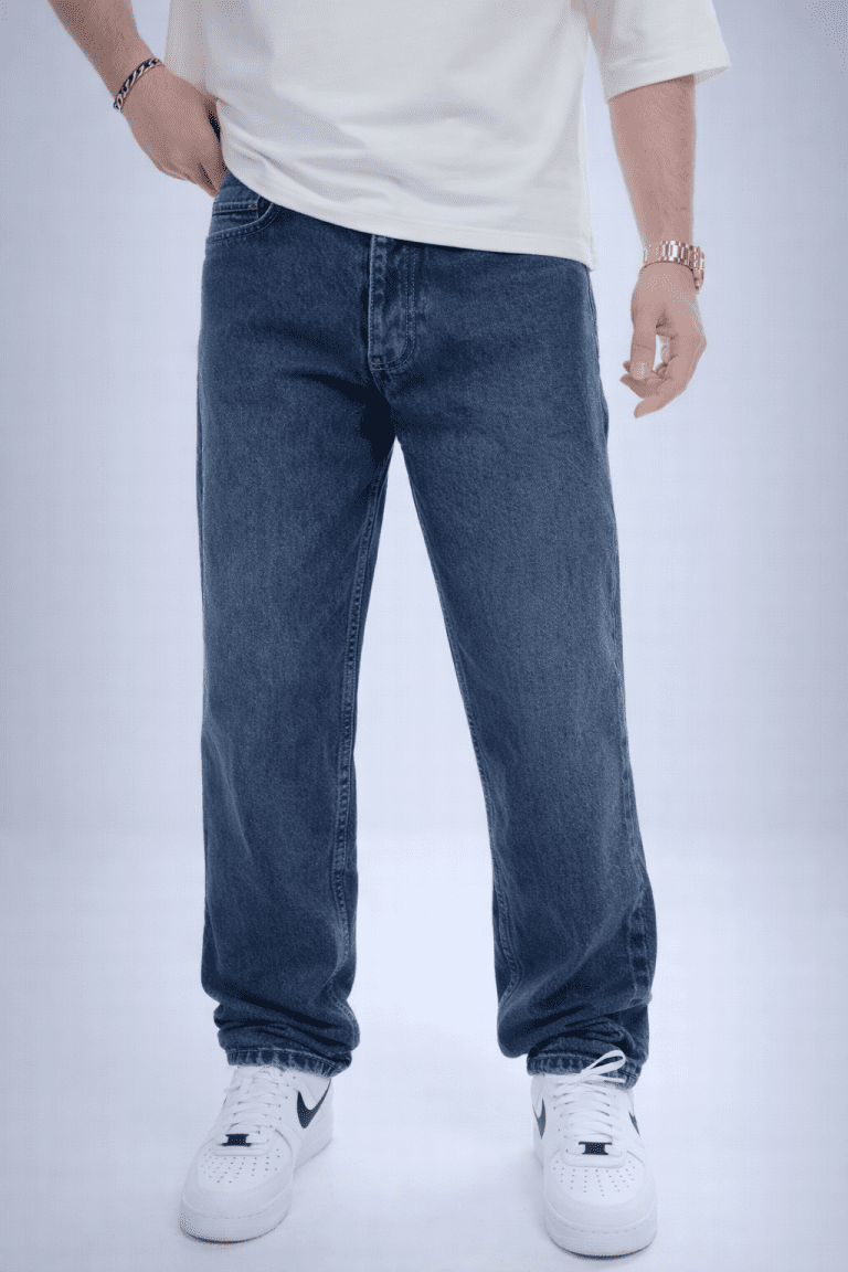 These relaxed fit blue jeans are designed for maximum comfort with a laid-back, modern look. The wider cut allows easy movement while maintaining a clean and stylish appearance.