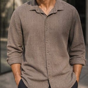 Taupe textured shirt designed for a clean and refined look. Crafted from lightweight, breathable fabric, it offers all-day comfort with a relaxed and modern silhouette.