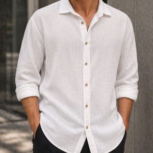 White textured shirt designed for a clean and refined summer look. Made from lightweight, breathable fabric, it delivers comfort while maintaining a relaxed and modern silhouette.