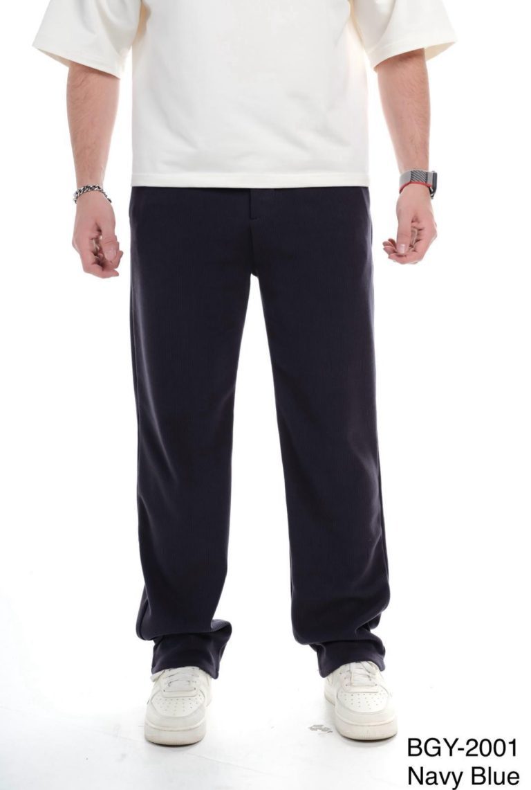 Pantallona ribbed në ngjyrë blu navy me prerje straight-fit dhe komoditet maksimal. Material i butë dhe fleksibël me teksturë të imët ribbed, që siguron rehati dhe pamje të pastër moderne. Të përshtatshme për veshje të përditshme dhe kombinime më të kuruara.