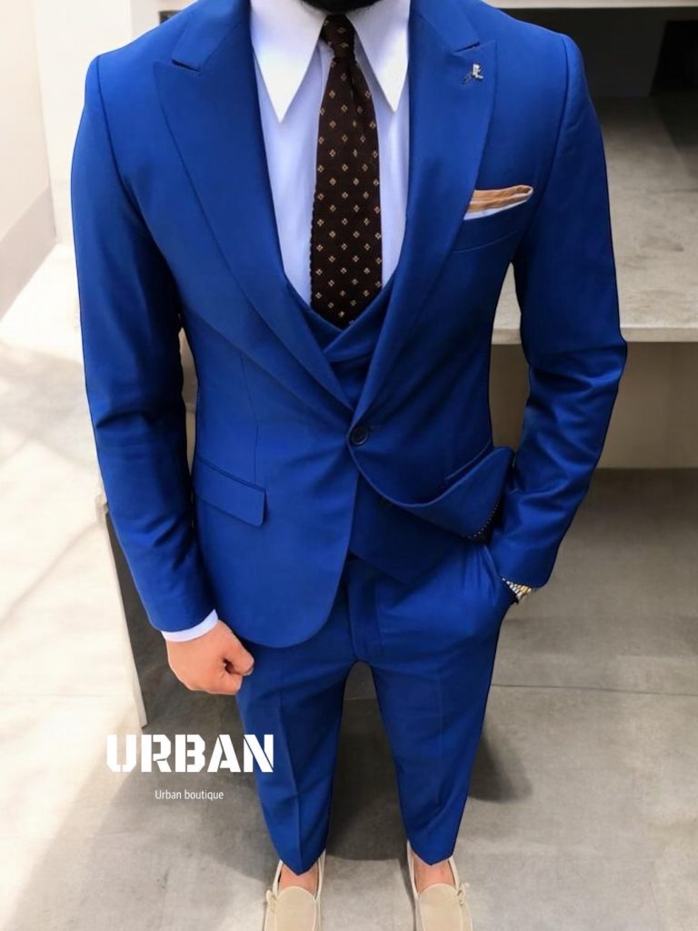 A luxurious royal blue suit set crafted for men who appreciate bold elegance and premium tailoring. The deep royal blue tone, slim-fit cut, and matching vest create a sharp and distinguished formal look. Ideal for weddings, VIP events, elegant evenings, and any occasion where style must stand out.