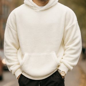 Hoodie sherpa në të bardhë qumështi – shumë i butë, i ngrohtë dhe estetik për dimër.
