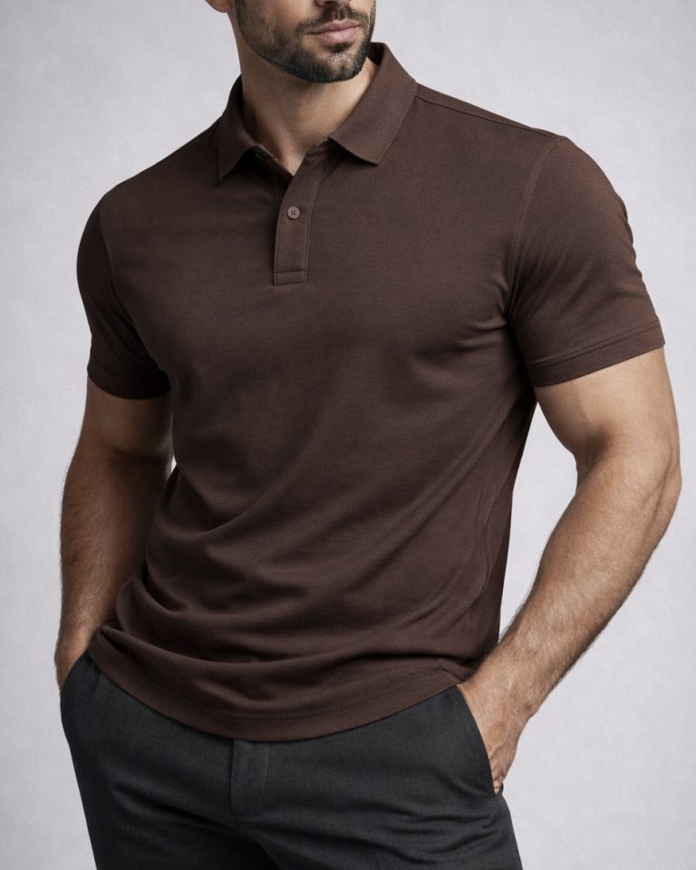 A refined polo designed with a clean and modern aesthetic. The soft and lightweight fabric ensures comfort throughout the day while maintaining a polished look. The brown tone adds a warm and elegant touch, making it easy to pair with both casual and more refined outfits.