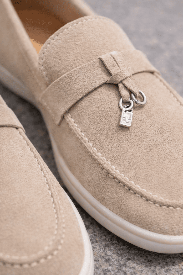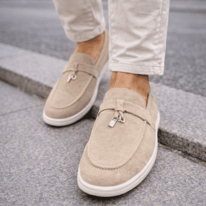 Slip-on loafers crafted from premium suede in a clean beige shade. The soft texture and neutral tone create a refined, versatile look that pairs easily with everyday and smart-casual outfits.