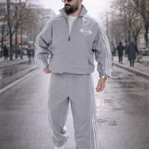 Set sportiv me stil minimalist dhe pamje të rafinuar. Ngjyra gri e butë krijon kombinime të lehta dhe elegante, ndërsa materiali i lehtë siguron rehati të vazhdueshme. I përshtatshëm për përdorim të përditshëm.
