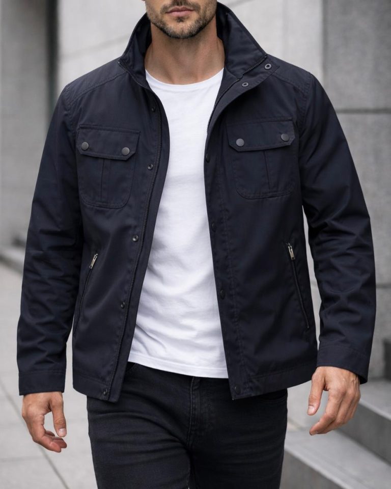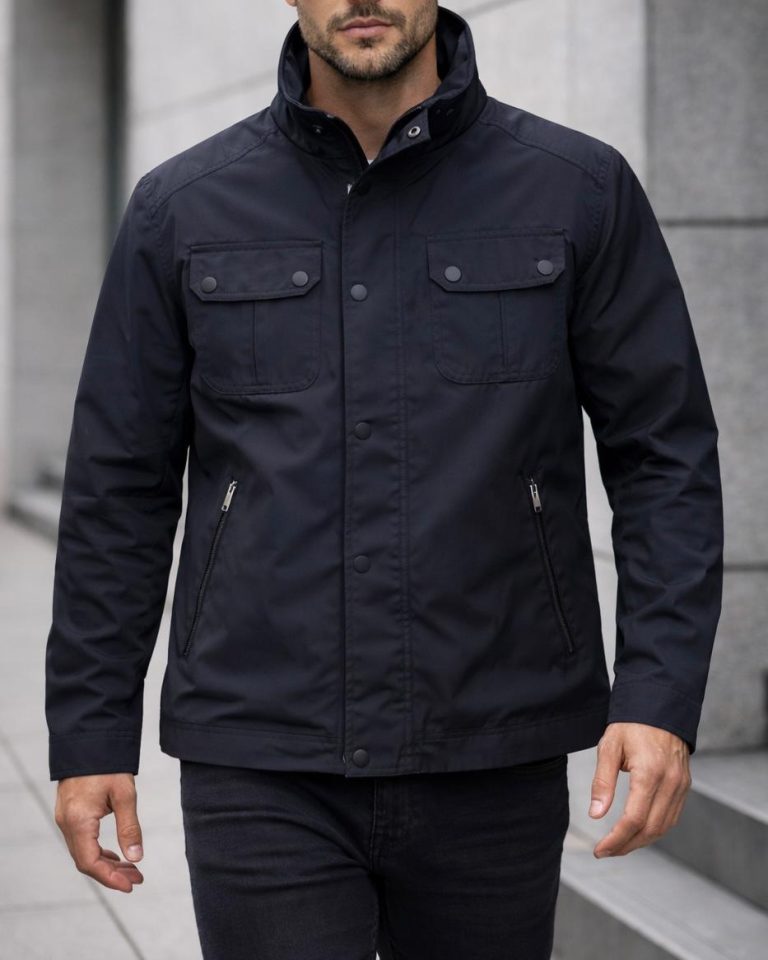 Modern field jacket designed with a clean and functional urban style. The durable fabric provides comfort and protection during cooler days while maintaining a structured and masculine appearance.