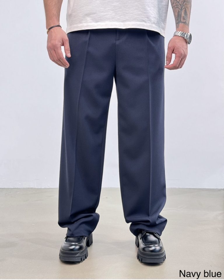 Modern tailored pants designed with a relaxed wide-leg silhouette for a clean and confident urban look. The structured design and smooth fabric provide comfort and versatility, making them suitable for everyday wear and refined street-style combinations.