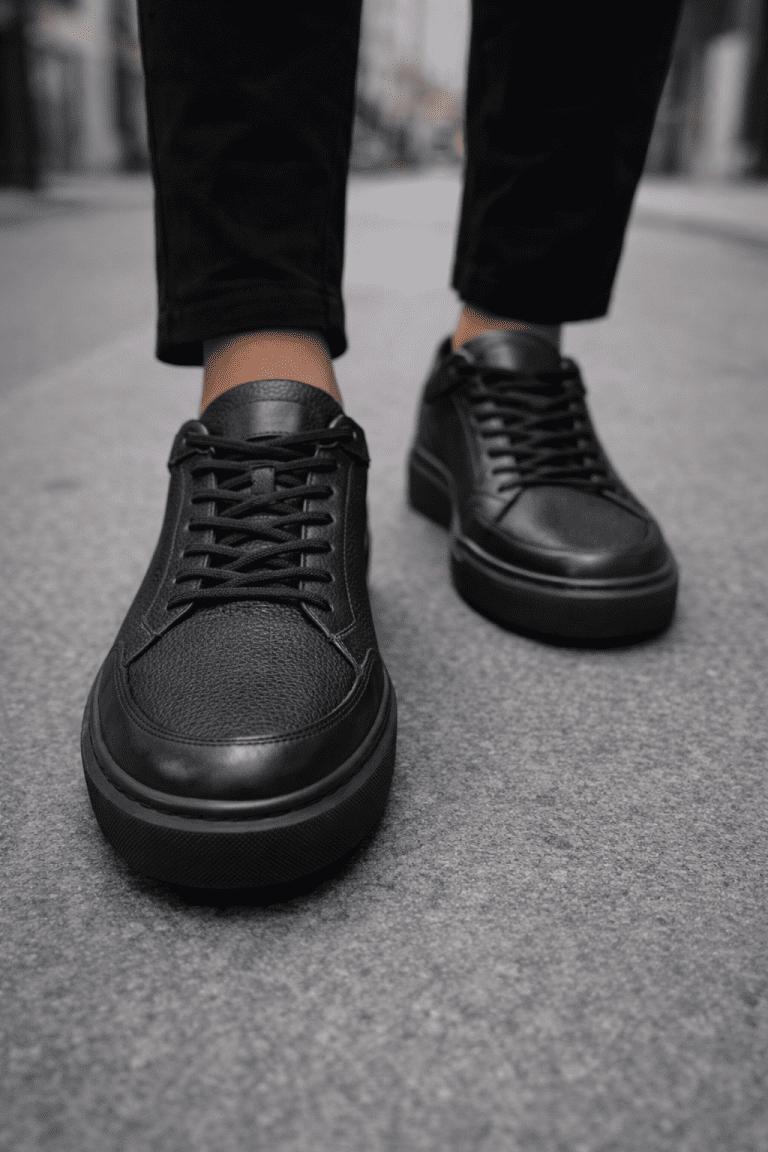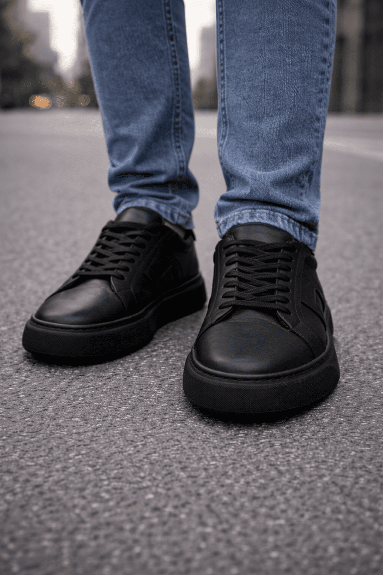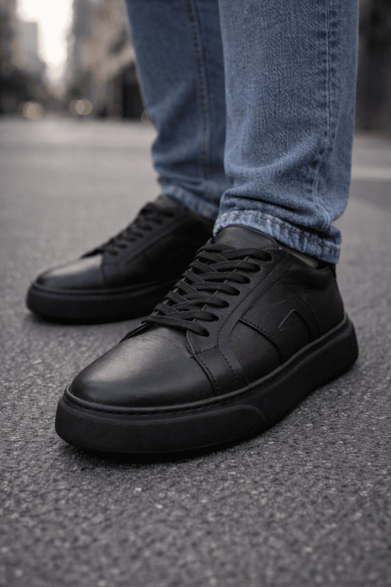 Essential Leather Sneakers – Black
