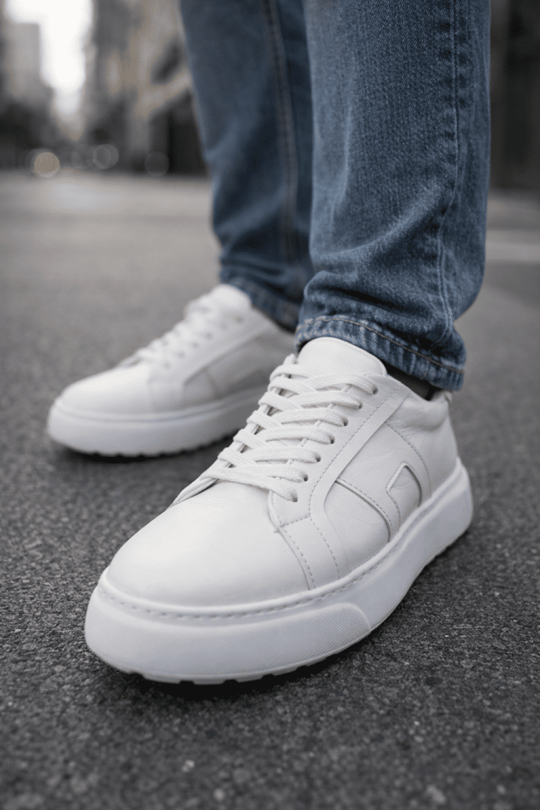 Leather Platform Sneakers – White