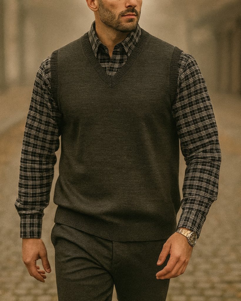 CLASSIC V-NECK KNITTED VEST – DARK GREY