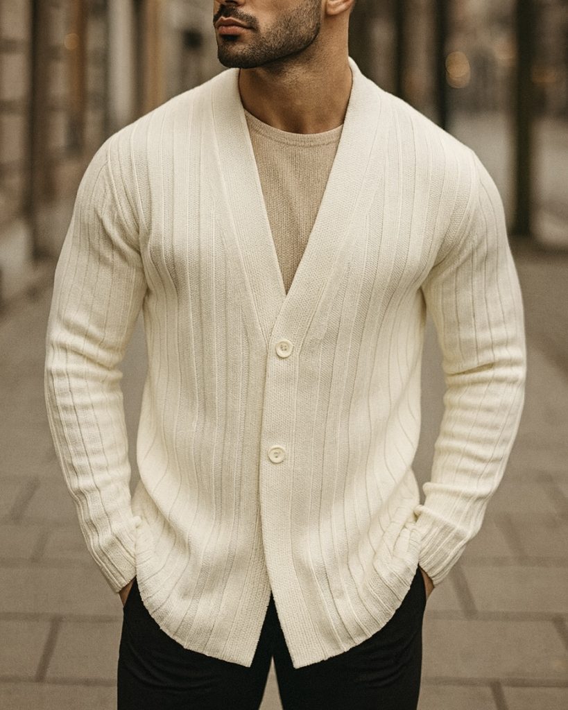 RIBBED CARDIGAN – WHITE
