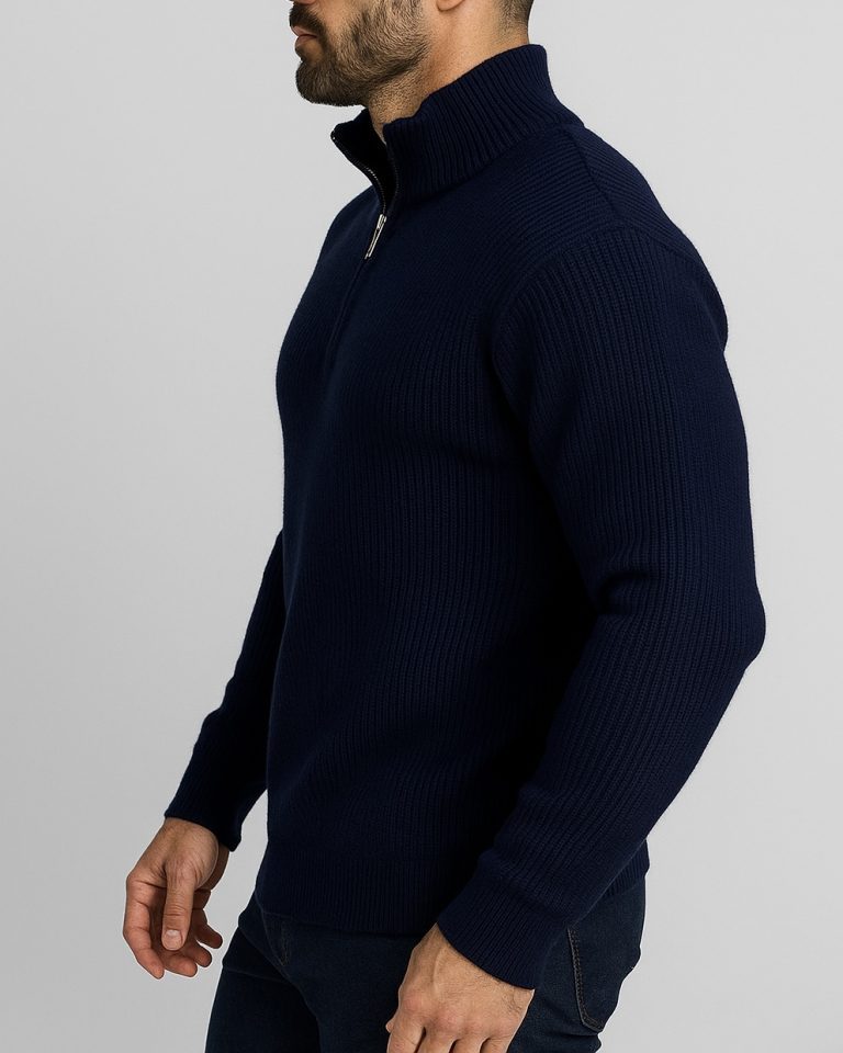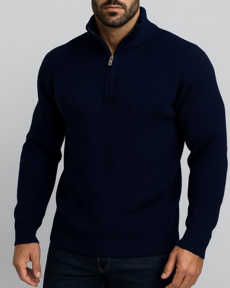 HALF-ZIP RIBBED KNIT SWEATER – NAVY BLUE