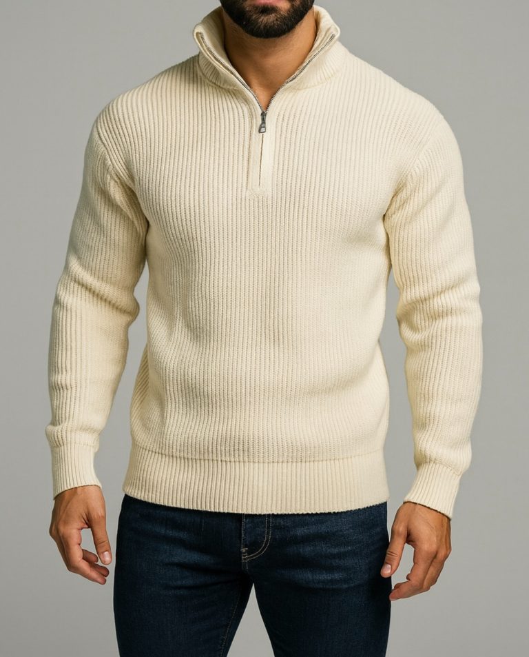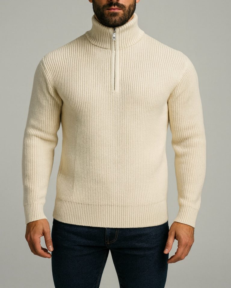 HALF-ZIP RIBBED KNIT SWEATER – MILK WHITE