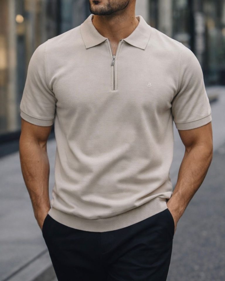 Slim Zip Polo Shirt – Beige
