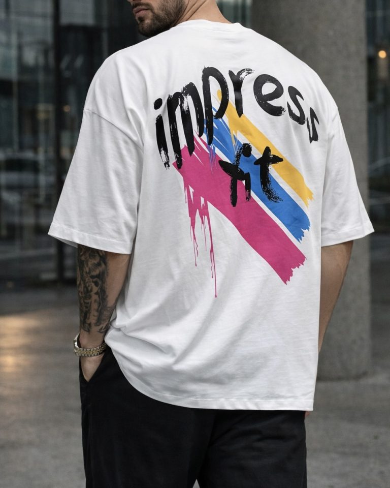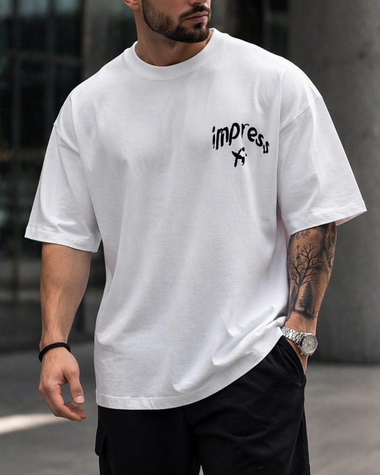 Oversized Minimal Graphic T-Shirt – Impress Edition White