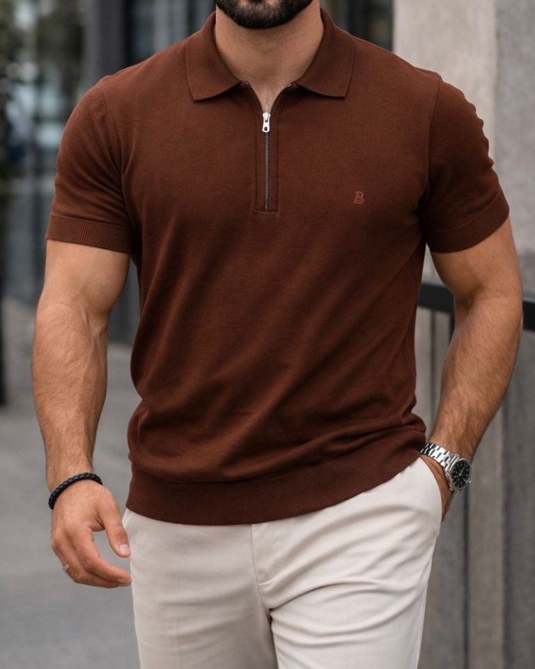 Slim Zip Polo Shirt – Brown