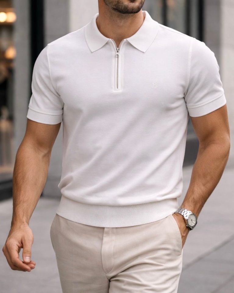 Slim Zip Knit Polo Shirt – White